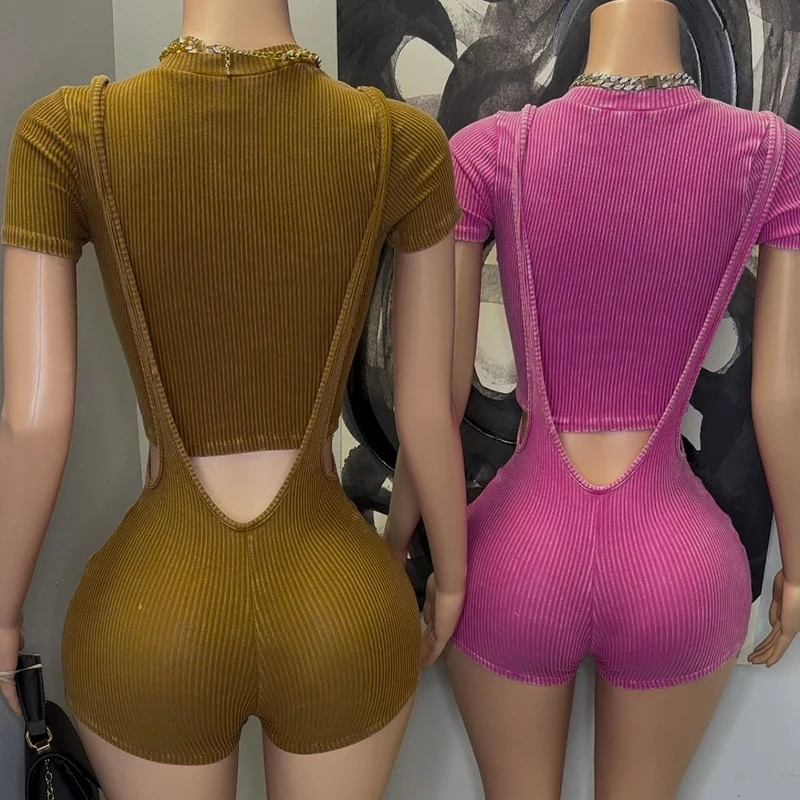 Huili Manufacturer Custom Logo High Quality Acid Wash Ribbed Crop Top & Shorts Outfits Sports Jumpsuits Two Piece Set for Women